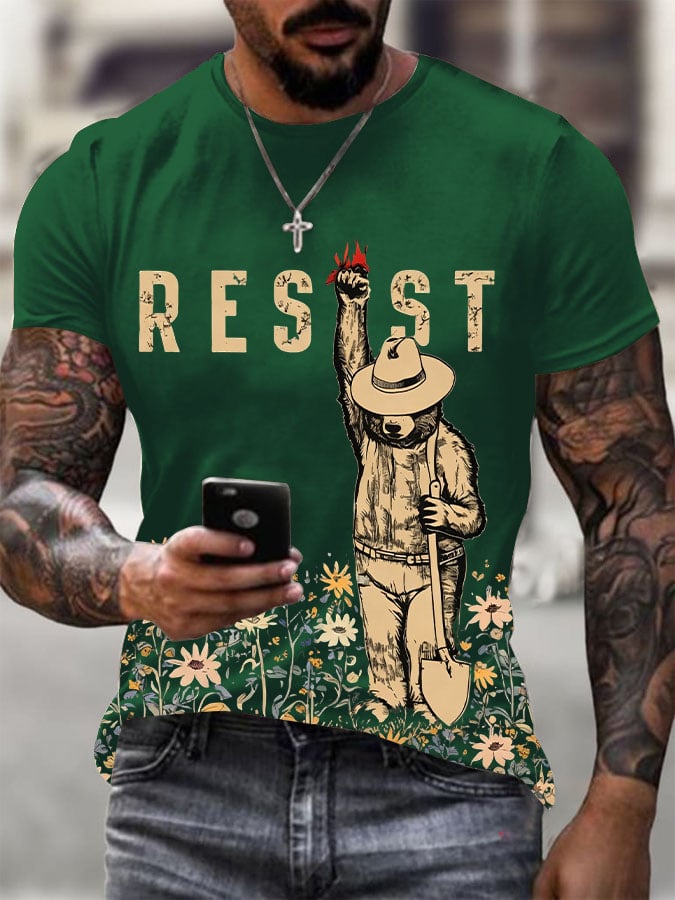 V-Neck Retro Resist Save The Forest Service Print T-Shirt