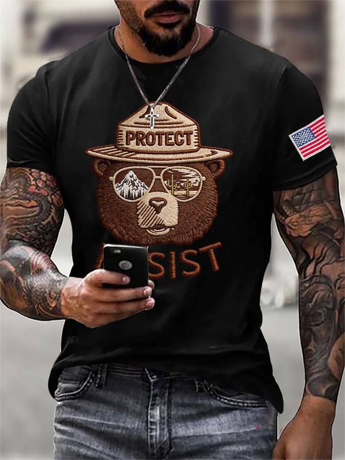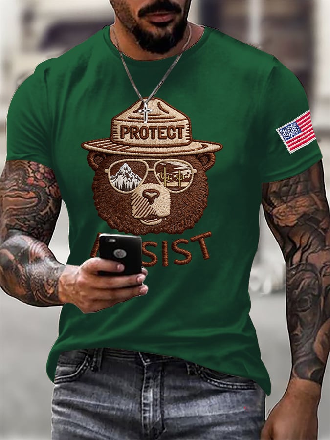 Men's Retro Save The Forest Service Protect And Resist Print T-Shirt