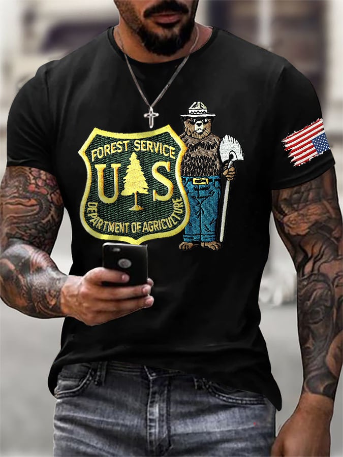 Men's Retro Save The Forest Service Print T-Shirt